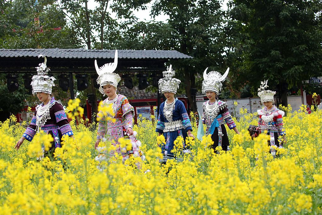 广西融水:少数民族相聚梦呜苗寨盛装庆祝妇女节