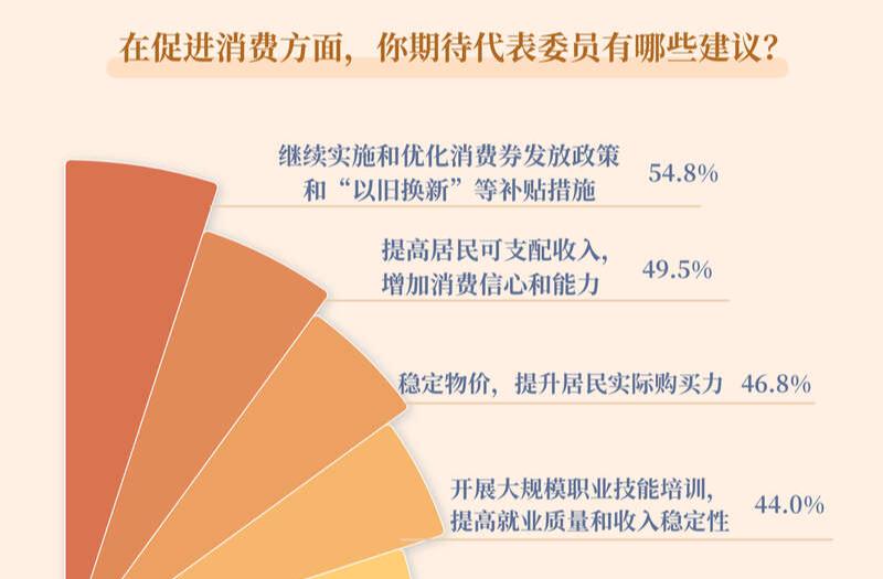 促进消费,54.8%受访者期待继续优化“以旧换新”等补贴措施