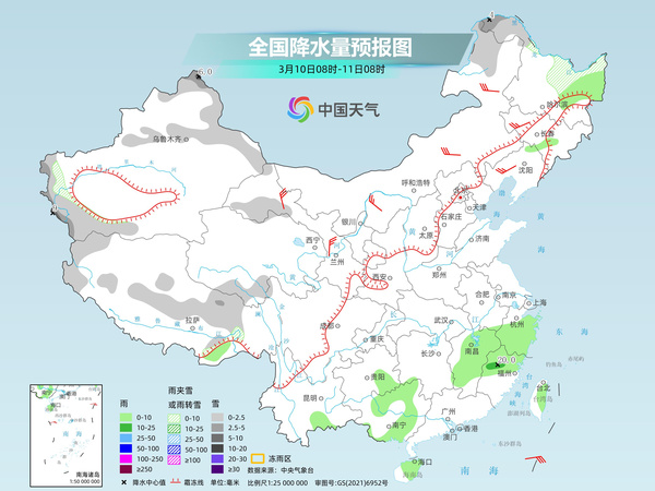 明天,新疆北部和南疆高海拔山区、内蒙古东北部、黑龙江西北部、西藏西部和北部、青海南部等地部分地区有小到中雪或雨夹雪,其中,新疆阿勒泰及南疆西部山区等地局地有大雪。