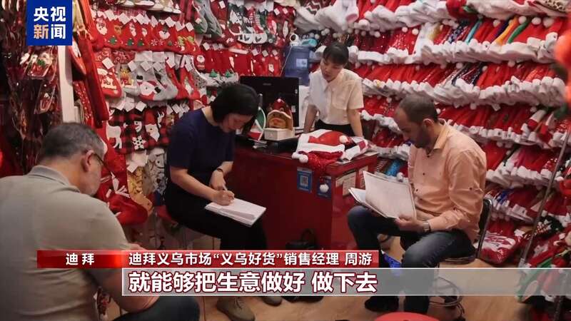迪拜义乌市场“义乌好货”销售经理 周游:在本地,我们大约有1000多个客户,包括本地的一些大型商超。我们也会帮助企业把他们的产品推向我们的客户,推向整个阿联酋以及中东和非洲市场。