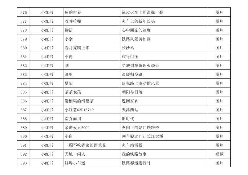 近日,活动承办单位人民日报客户端、新华网客户端、微博、抖音、小红书和中国铁路新媒体平台,对首季活动遴选展示的作品进行了评审,最终形成410件优秀作品。