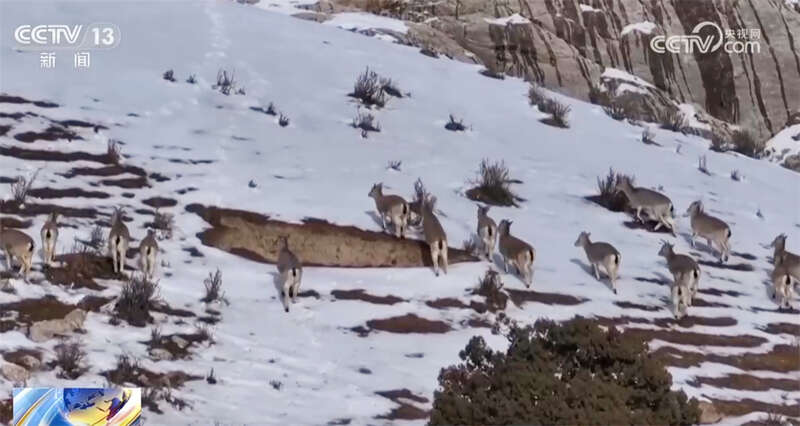 青海德令哈:成群岩羊现身雪后高原