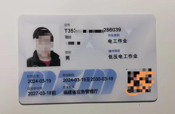 记者注意到,这张特种作业操作证上清晰地标注有证号、持证人姓名、作业类别等详细信息,左下角发证机关显示为福建省应急管理厅,右下角有验证该证件的二维码。扫码后,网页显示出证书扫码结果,显示信息完全匹配,下方备注显示“本证书应于2025-08-18前进行复审”。