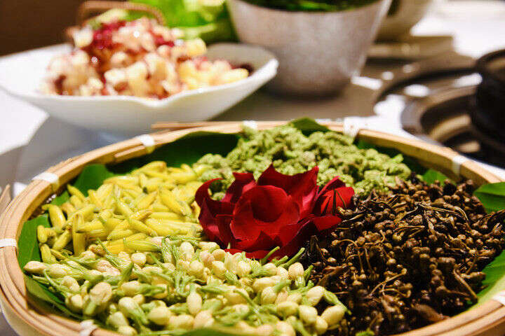 “金雀花煎蛋、芭蕉花炒肉、鲜花汤锅,这些都是我们春季的特色菜品。”昆明西山区一家滇菜馆的经理李翱介绍,餐馆以可食用的时令鲜花为食材,推出“滇味鲜花套餐”;近期生意很好,接下来餐馆还会根据不同野菜和野生菌上市时间推出相应菜品。