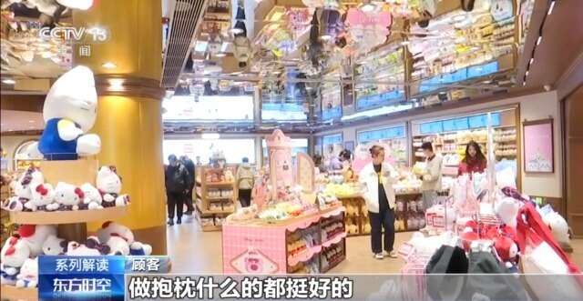 《提振消费专项行动方案》中提到了支持开发原创IP品牌,促进动漫、电竞、游戏及其衍生品等消费,工作日的下午这家IP联名店依然吸引了不少顾客。店铺显眼位置可以看到首发、首秀的国产周边衍生品。