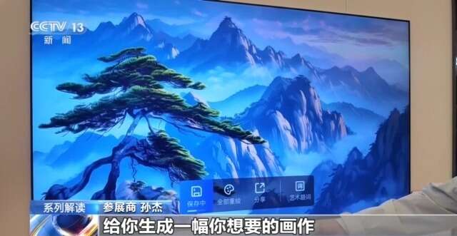 参展商 孙杰:只要说出你想要的画面内容,它就会很短的时间给你生出一幅你想要的画作。既可以作为自己的画作在电视上欣赏,也可以通过微信扫码复制到电脑手机上作为桌面。