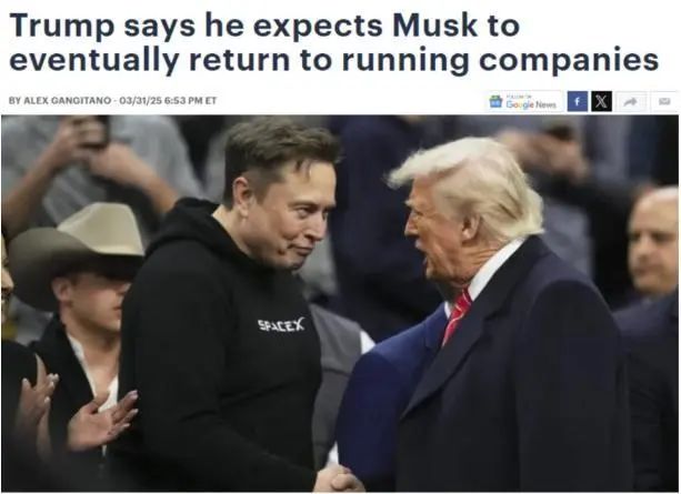 据美国《国会山报》报道,当地时间3月31日,美国总统特朗普表示,他预计美国政府效率部负责人马斯克在完成联邦政府改革工作后,最终会回归经营自己的公司。