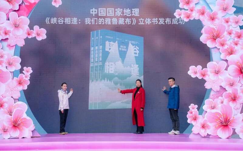 当日活动现场,中国国家地理营地团队历时一年多打造的立体书《峡谷相逢:我们的雅鲁藏布》发布。该书以雅鲁藏布江大峡谷“九大垂直自然带”为主线,通过抽拉、翻折、跨页、折叠、弹跳等多项互动设计,生动呈现冰川、雨林、雪峰等奇观,带读者踏上一次“纸上科学旅行”。