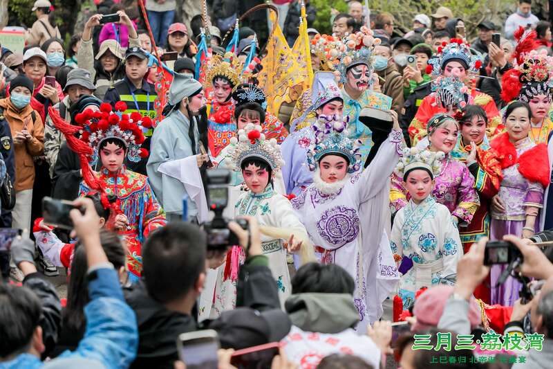 中国青年报客户端讯(中青报·中青网记者 林洁)近日,第十五届“荔枝湾·新西关”民俗文化活动之“三月三·荔枝湾”——上巳春归 北帝诞 长桌宴在广州市荔枝湾景区拉开帷幕。活动以“泮塘乡情、民俗巡游、上巳踏青、长桌盛宴”四大篇章,打造一场融合民俗精粹与现代文旅创意的春日盛宴。