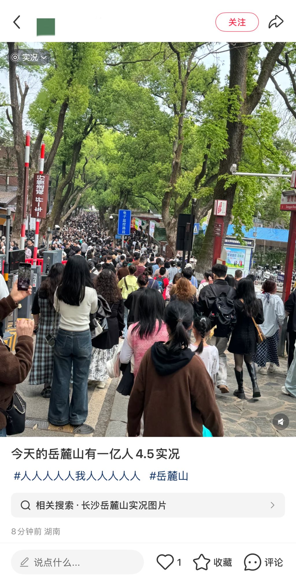 与此同时,社交平台上,清明假期在外旅游的网友们纷纷发布“XX有一亿人”、“XX人从众”的照片。