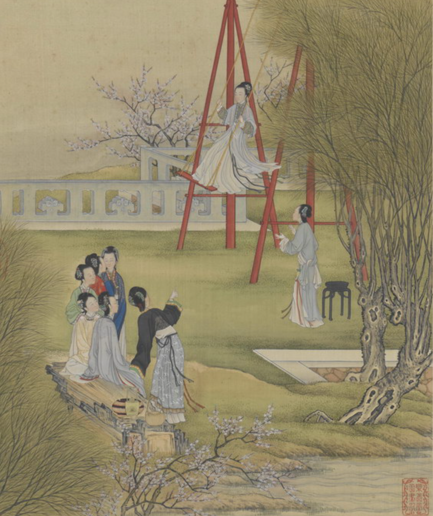 清 陈枚《月曼清游图册》之《杨柳荡千》 故宫博物院藏