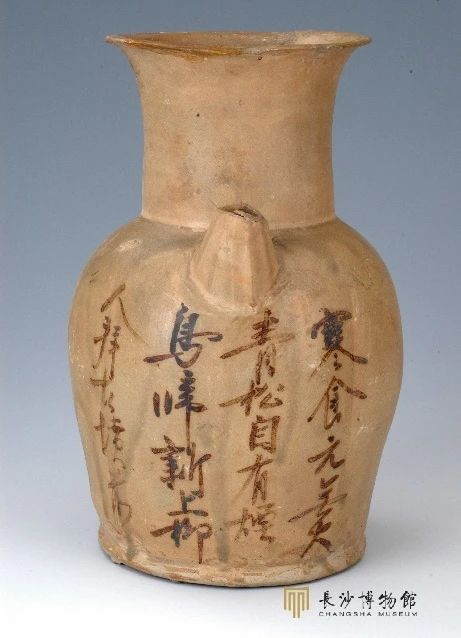 唐 长沙窑青釉褐彩“寒食元无火”诗词壶 长沙博物馆藏