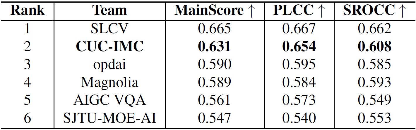 CVPR 2025 AI生成视频质量评价挑战赛榜单(前六名)