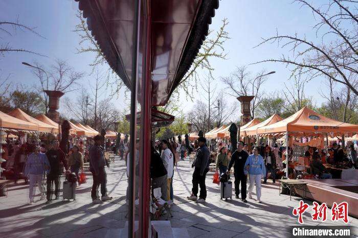 4月4日,三山五园文化市集在北京同庆街开市,特色摊位沿街铺展,在清明假期为民众带来沉浸式文化体验。中新社记者 张祥毅 摄