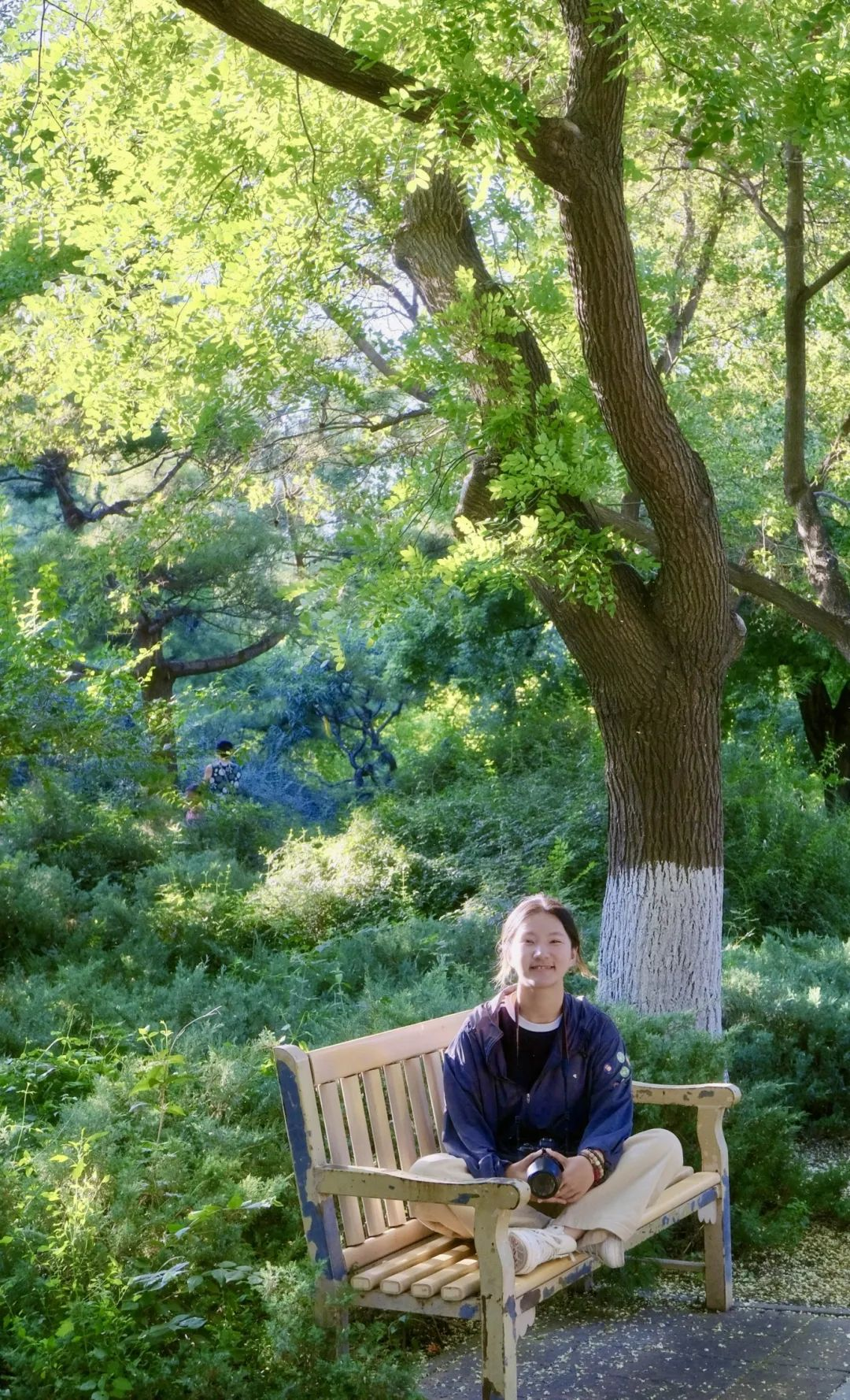 这张照片拍摄于地坛公园,那天天气格外的好,阳光透过绿叶在地上投射出点点斑驳。我与同伴一起找寻了“铁生的树”,一同看到了“地坛的海”,手臂上的驱蚊贴是我完成了地质实习的勋章,虽然奔波数日却依旧淹没不了此刻的喜悦。