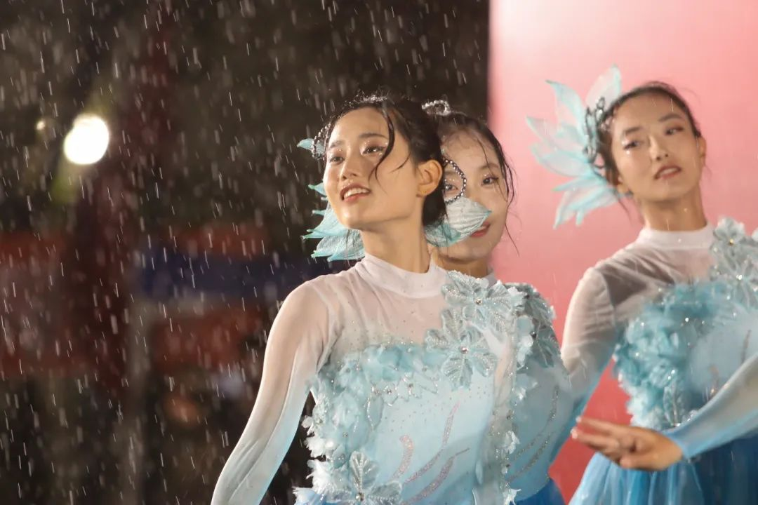 军训时我参加了军训合唱汇演的伴舞,我拾起了曾经的爱好,也认识了志同道合的好友。表演那天轮到我们登场时,天空下起了瓢泼大雨,我们在雨中起舞,雨声配合着铿锵的音乐,歌颂着伟大的中国共产党,我们热情高昂,充满斗志。歌曲结尾,大雨渐停,掌声为我们响起,这是我大学生活的起点,充满了无限希冀。