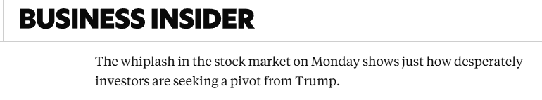 财经媒体《商业内幕》网站则在7日美股因“假消息”剧烈波动后,给出评价:周一股市的剧烈波动表明,投资者正在多么迫切地寻求特朗普的转向。