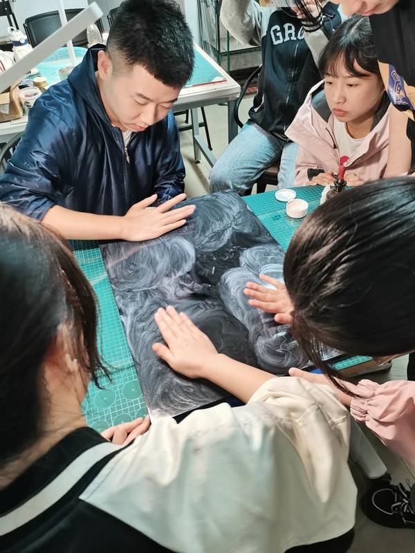 如何改写这样的传承“剧本”?担任武汉城市职业学院辅导员之后,叶天泰创立了“艺绘言传大漆技艺工作坊”。他将大漆镶嵌髹饰技艺流程制作成教学视频,发送到学校公共平台,供有兴趣的学生学习。叶天泰还通过开设课程、参办展览、文化宣讲等形式,推广和普及大漆文化及镶嵌髹饰技艺、知识,让更多人了解这门传统技艺。