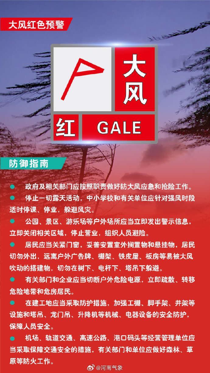 河南两地发布大风红色预警信号