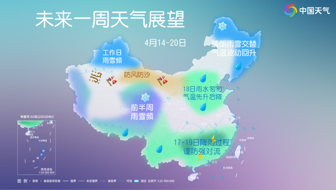 ③南方16日至17日、18日至19日将有降雨过程,后一次过程部分地区可能伴有强对流天气。