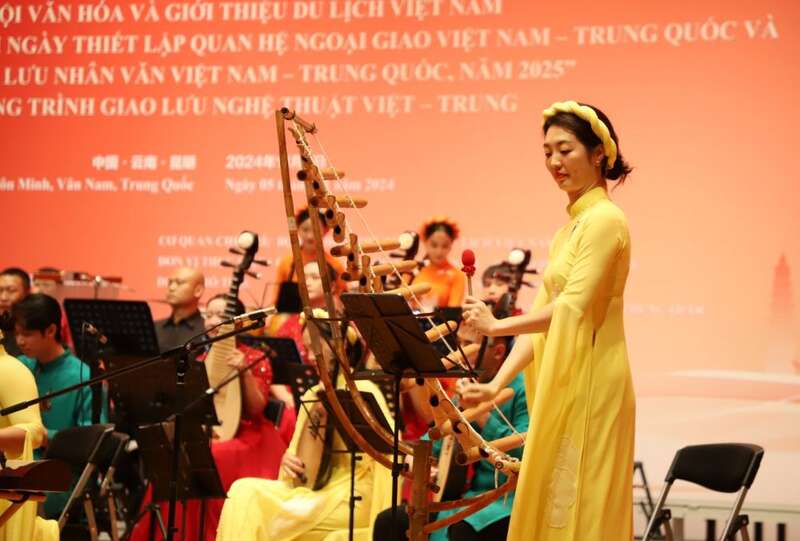 在河内的音乐厅里,越南指挥家童光荣挥动指挥棒,中国作曲家莫双双静静伴奏。这对跨国伉俪用音乐搭起桥梁,将两国观众的心紧紧相连。
