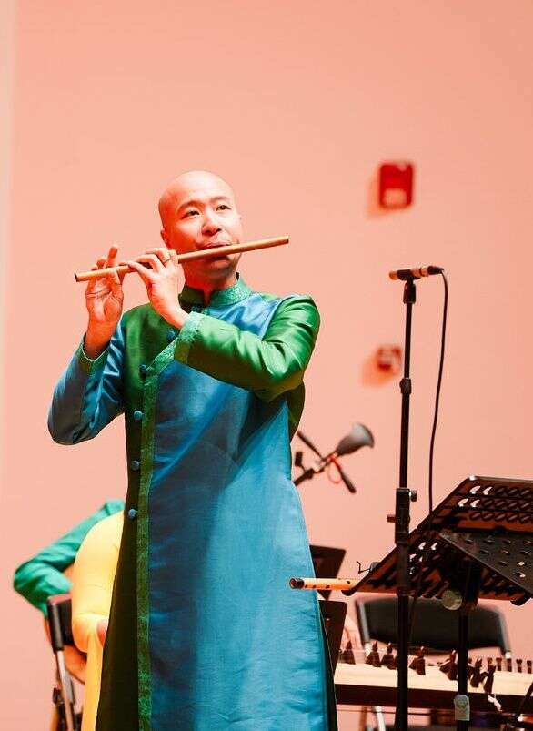 2013年,他们在河内创办了“新活力”竹乐团。清亮的竹笛、悠扬的独弦琴、轻快的竹排琴交织出别样的乐音。这支乐团使用的竹制乐器全部由童光荣的父亲亲手制作,凝聚着越南的传统技艺和家庭热情。夫妇俩在演奏中巧妙融入中国民乐元素,让古老的越南竹乐焕发出新的活力——中国的韵味与越南的旋律在此交融。