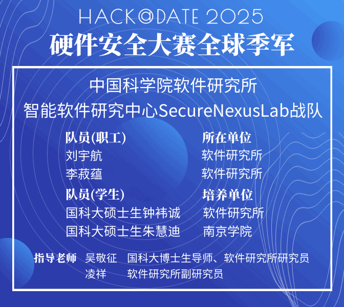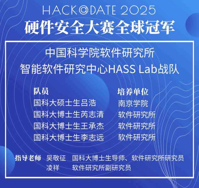 中国科学院软件研究所参赛队伍此次的优异表现,展现其在RISC-V安全领域的技术积累、突出实力和育人成效。未来,研究团队将继续开展联合攻关,立足RISC-V处理器及其基础软件安全研究的核心领域,以构建安全可靠的RISC-V开源生态为目标,为RISC-V处理器及其基础软件产业化应用提供坚实的安全保障。