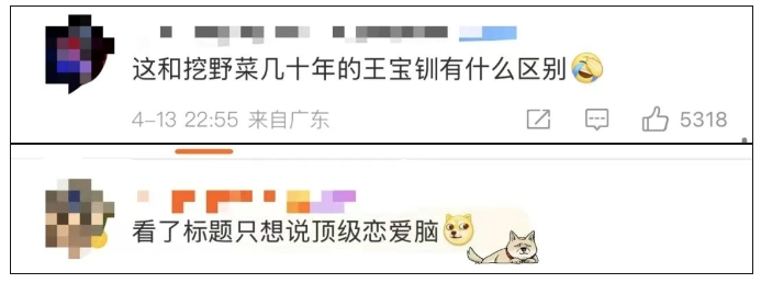 在相关报道的评论区中,不少人对王婷的行为表示不解,甚至还给她贴上了“挖野菜的王宝钏””恋爱脑典范”等标签。