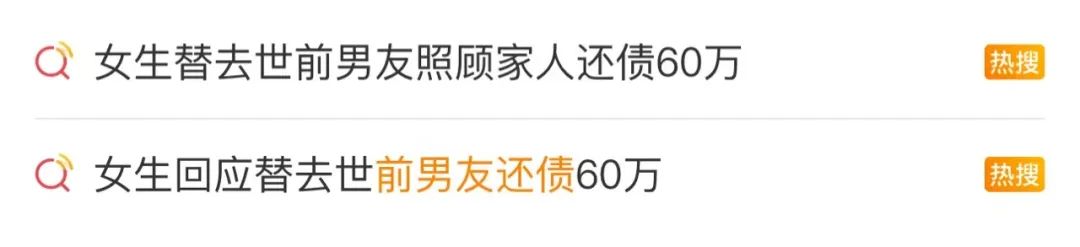 近日,一条“女生替去世前男友照顾家人还债60万”的微博热搜,引发关注。
