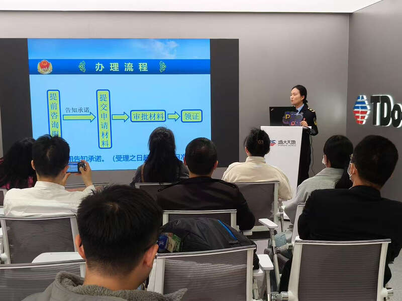 浦东市场监管局注册许可分局的志愿者贾米尔一边讲课,一边为学员答疑,她甚至还把《食品经营许可证》样板带来了现场,手把手教学员们如何办证。