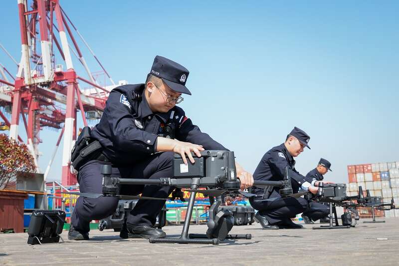 当日9时许,边检“37401”、海巡“05709”等4艘执法船艇和3架警用无人机、水下机器人同步启动,通过后台大数据核查、海上联合巡查、无人机和水下机器人检查等方式,对青岛港港池、航道、锚地以及附近海域开展拉网式排查,并对目标海域内作业船舶、搭靠船舶等情况进行检查,重点打击非法搭靠、违规登轮、走私偷渡等违法行为。