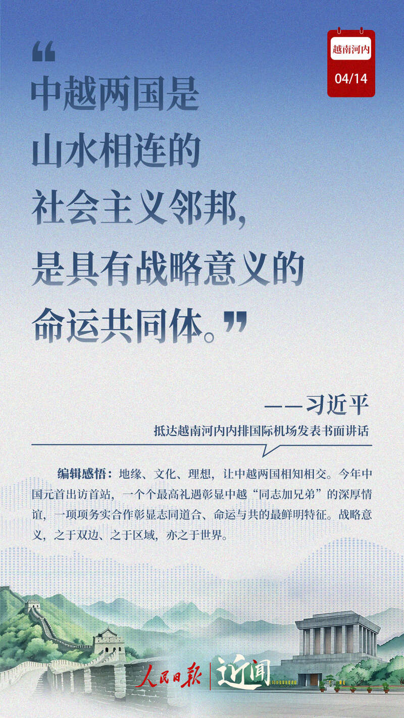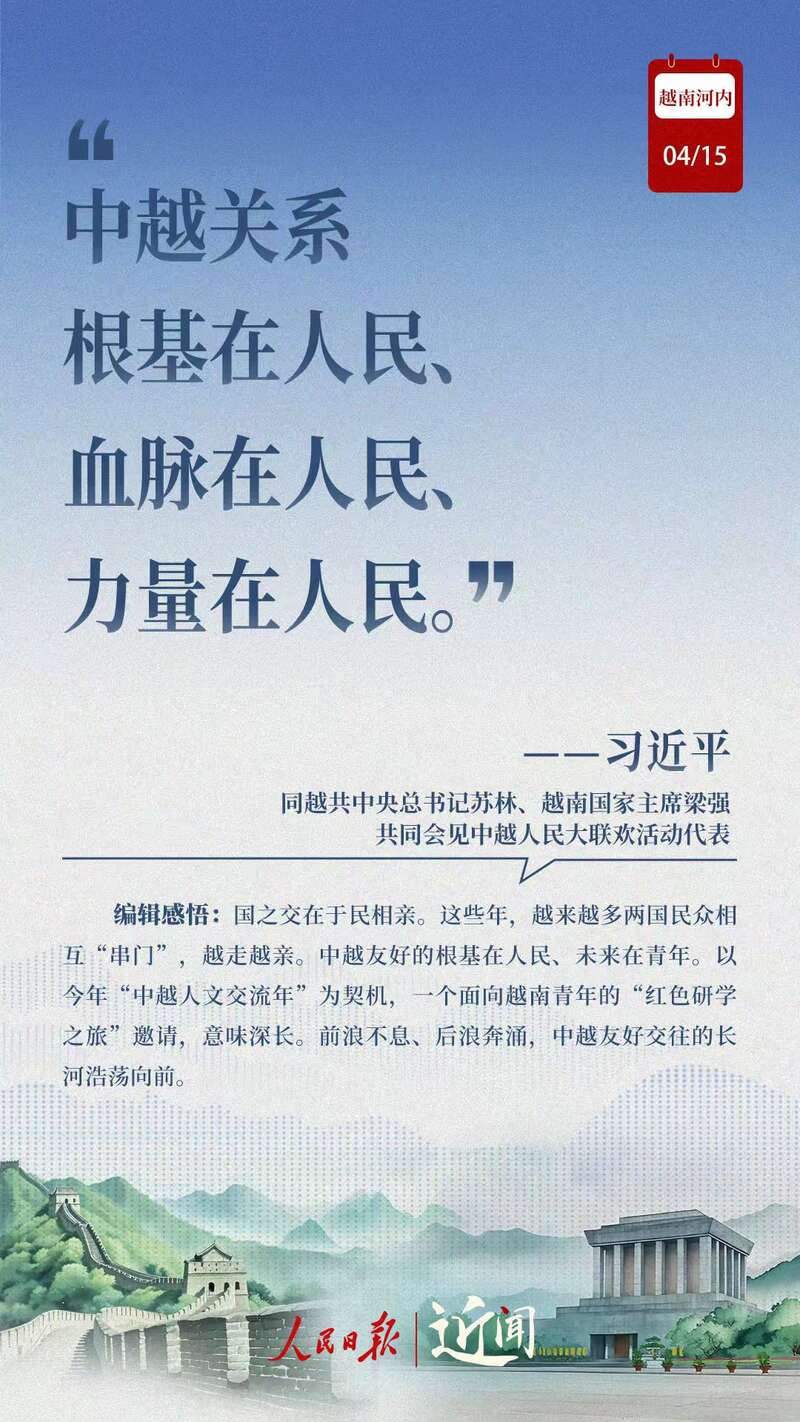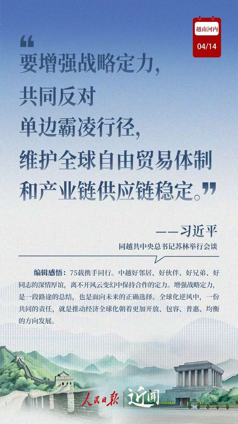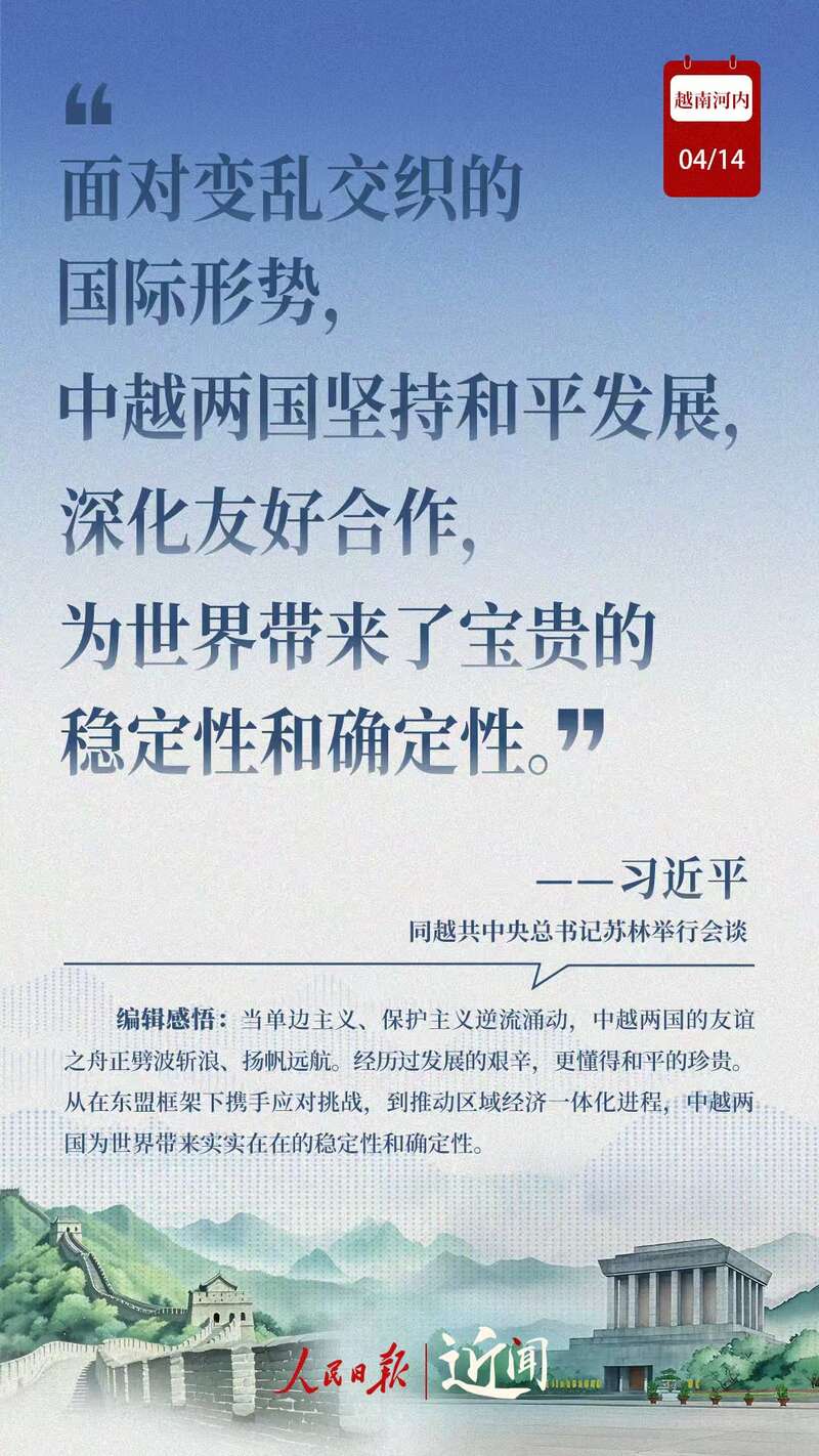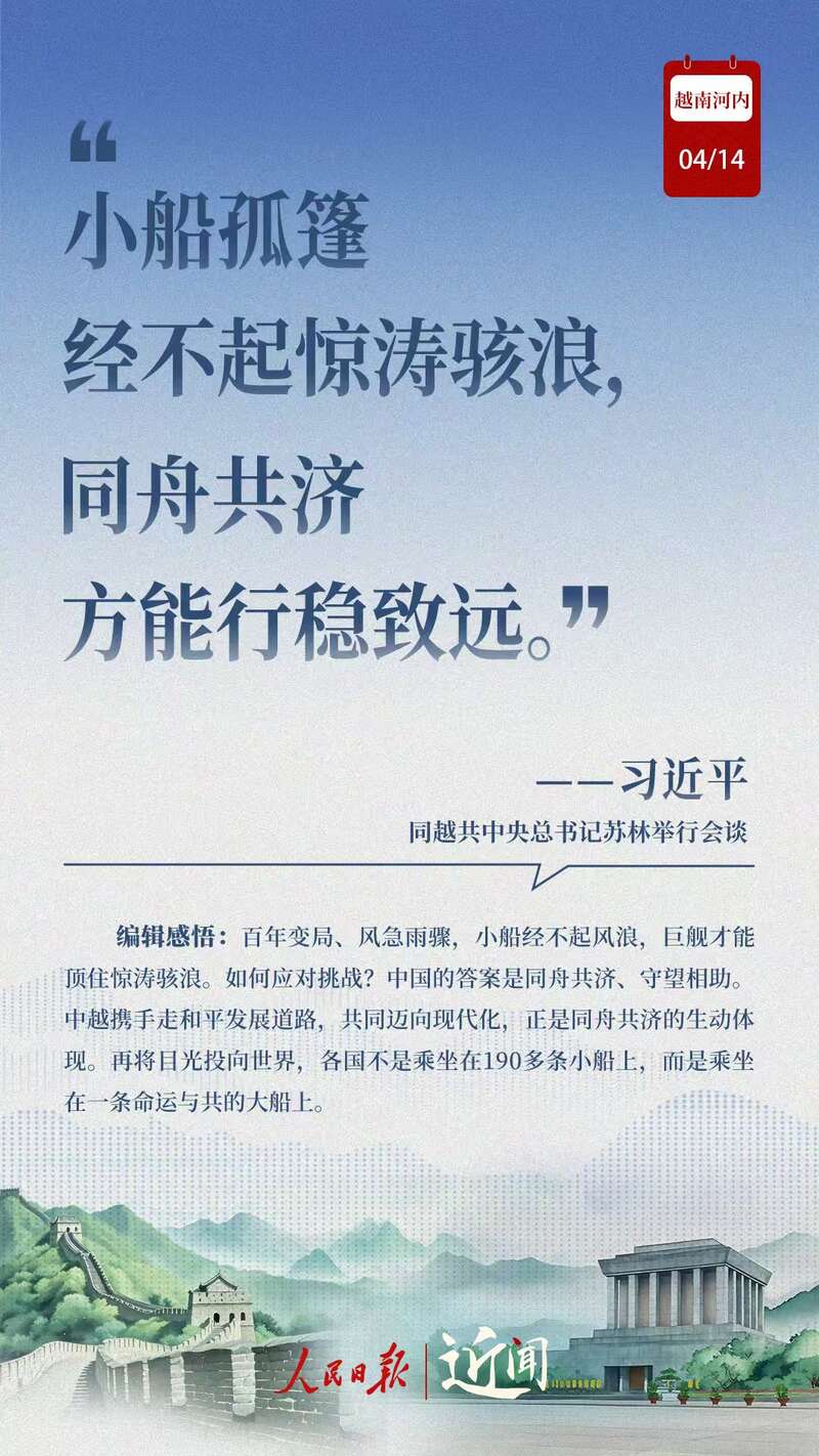 “小船孤篷经不起惊涛骇浪,同舟共济方能行稳致远”“中越关系根基在人民、血脉在人民、力量在人民”……透过这些话,一览此次越南之行。