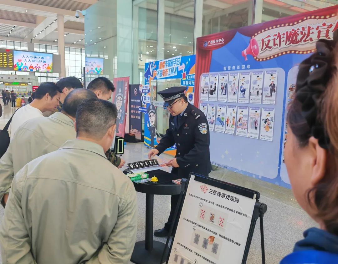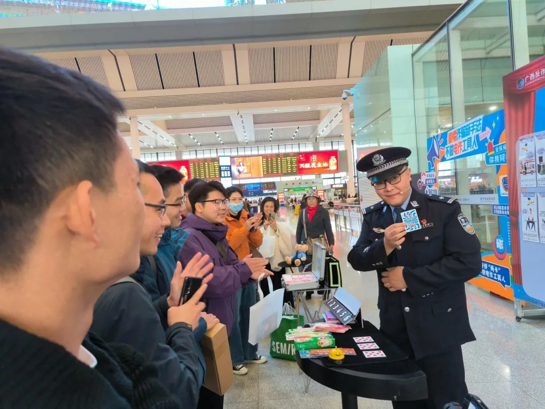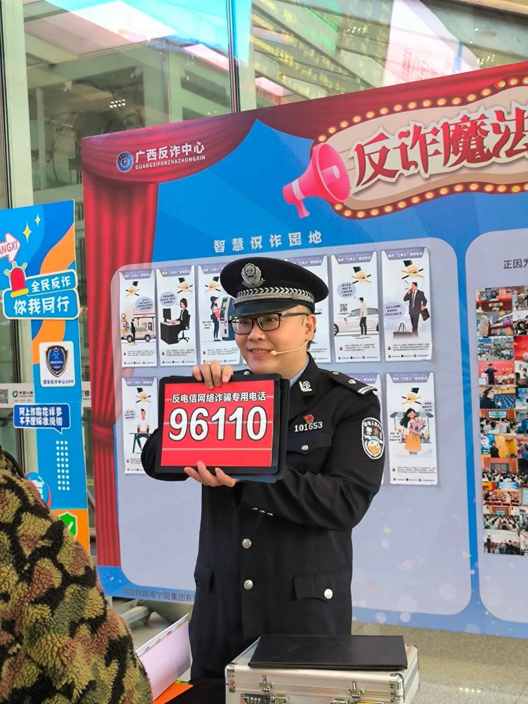秦国平,我院2006届毕业生,广西反诈宣传形象大使、南宁铁路公安局“警营魔术师”!从警19年,他获得了三个三等功,曾多次登上央视及全国各大媒体的舞台,传递警察文化正能量。在维护旅客安全的道路上,他创新反诈形式,用独特的“魔法”守护大家的财产安全。下面,让我们一起走进校友秦国平与他的“魔法宣传站”,看看他如何用“反诈魔术”为群众筑牢安全防线!