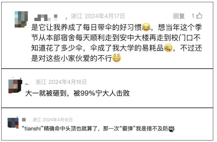 据了解,为了帮助大学生们防御“天屎”,宁波大学还专门推出了文创雨伞。