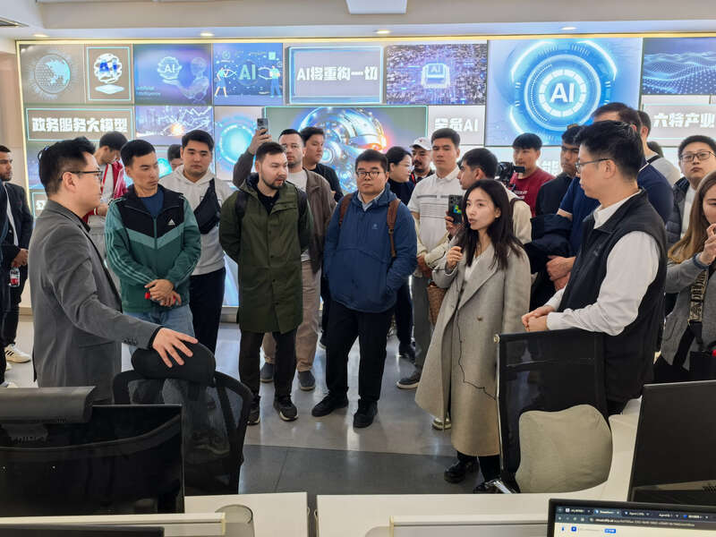 4月13日,宁夏银川,2025“未来之桥”中国-中亚青年领导人研修交流营期间,中国和中亚青年代表走进宁夏希望信息产业股份有限公司,了解人工智能如何赋能宁夏特色产业,深入感受中国数字技术的创新应用与发展成果。中青报·中青网记者 赵安琪/摄