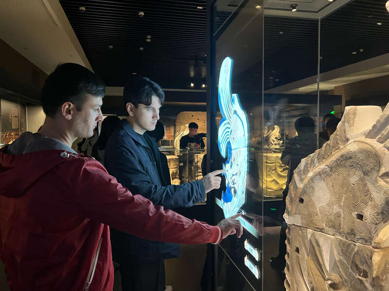 4月15日,宁夏银川,2025“未来之桥”中国-中亚青年领导人研修交流营期间,中亚青年代表在西夏陵博物馆参观,近距离感受西夏文明的独特魅力。中青报·中青网记者 赵安琪/摄