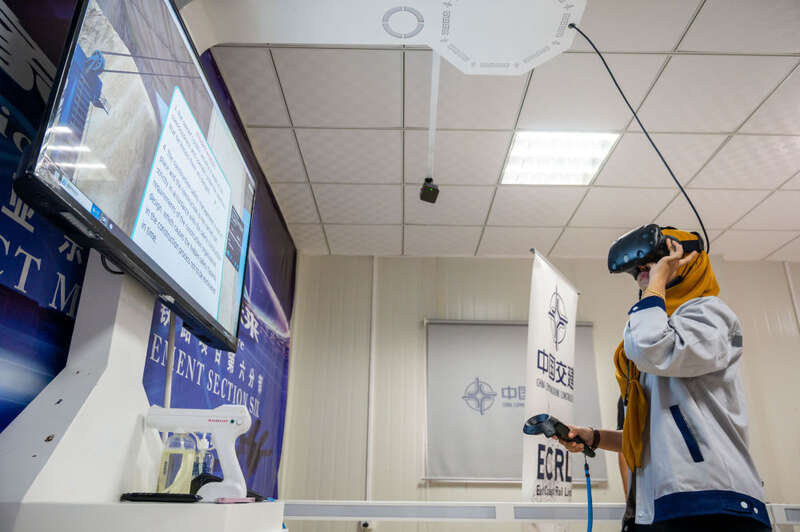 2021年11月9日,在位于彭亨州马兰的马来西亚东海岸铁路项目安全教育培训中心,一名工作人员借助VR技术学习安全知识。为确保项目安全推进,中国交通建设集团有限公司在承建的马东铁项目沿线设立了多个虚拟现实和实体体验安全教育培训中心,借助沉浸式3D技术与VR设备,模拟了近百种潜在的施工现场危险情况,有效提升了项目员工的安全意识和技能水平。