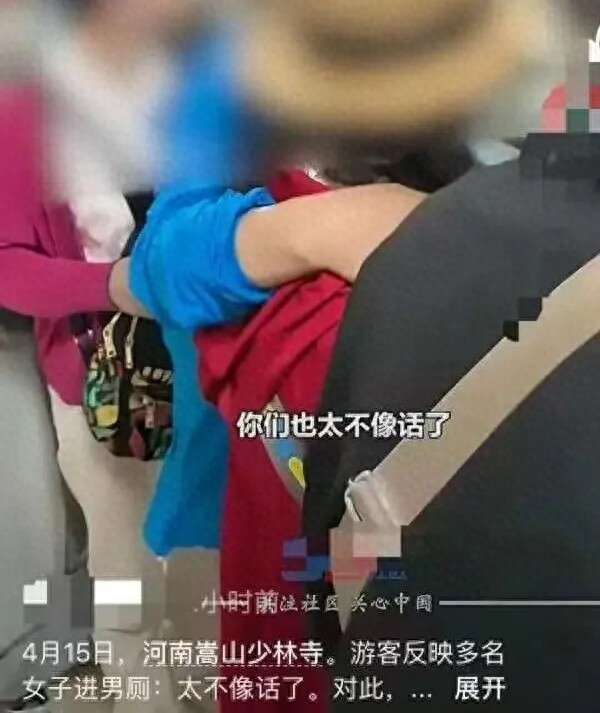 河南嵩山少林风景区多名女游客进入男厕所如厕,遭在场男游客怒斥。