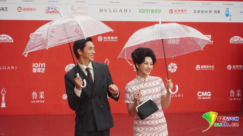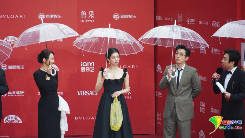 中国青年网北京4月19日电(记者 纪佳琦 见习记者 孙佳蔚)4月18日,第十五届北京国际电影节在怀柔雁栖湖国际会展中心开幕。活动当天北京出现持续降雨,气温降至12℃,但红毯仪式仍在雨中如期举行。