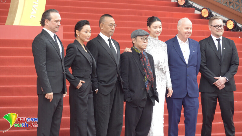 第十五届北影节“天坛奖”国际评奖委员会主席、中国导演、演员姜文携华语导演、演员陈冲,英国导演大卫·叶茨,中国演员倪妮,芬兰导演泰穆·尼基,主宾国瑞士导演、演员文森特·佩雷斯和中国香港艺术指导叶锦添等六位评委亮相。中国青年网见习记者 孙佳蔚摄