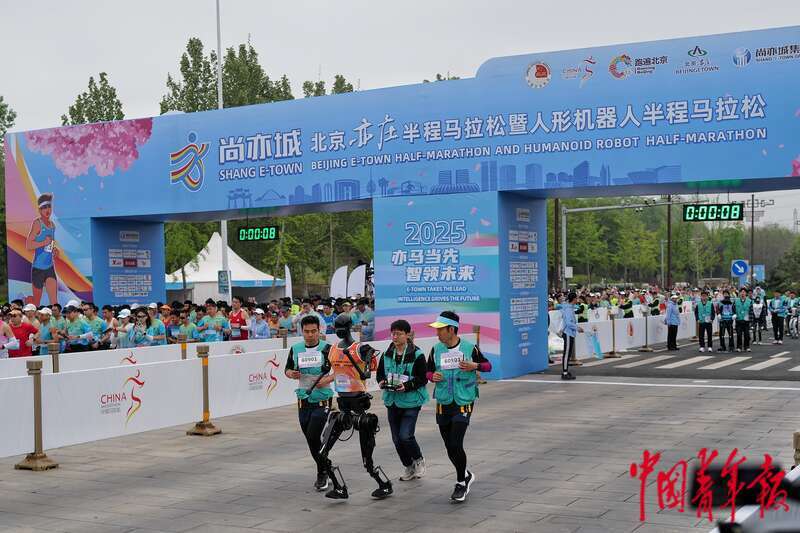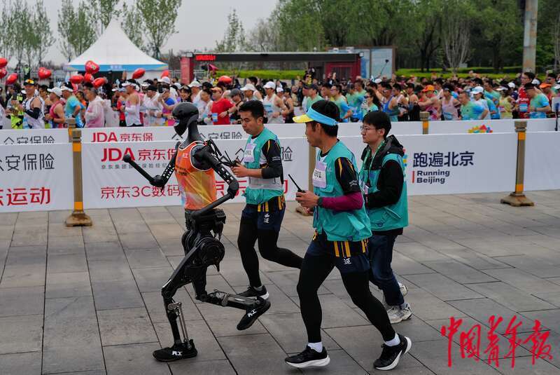 机器人赛队冲出起跑线 全球首个人形机器人半程马拉松开跑