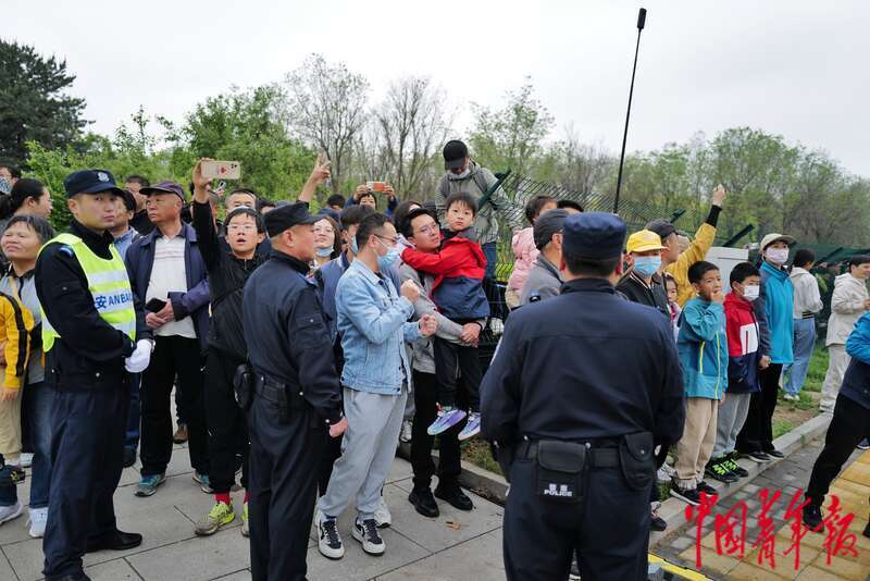 4月19日7时30分,北京亦庄半程马拉松暨人形机器人半程马拉松在南海子公园南门开跑。这是全球首个人形机器人半程马拉松,吸引了许多市民在赛道沿途围观。中青报·中青网记者 赵迪/摄