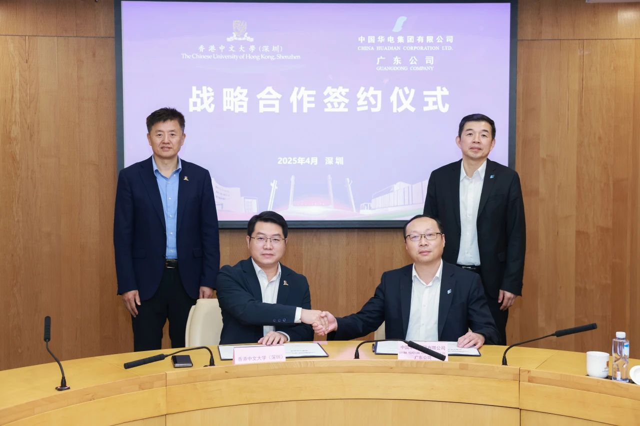2025年4月15日,香港中文大学(深圳)与中国华电集团有限公司广东分公司签订战略合作协议。中国华电集团有限公司广东分公司党委书记、执行董事梁汉东、党委委员、副总经理陆烨,香港中文大学(深圳)党委书记、协理副校长李学金、协理副校长卢国师等大学主管人员和相关学院、研究院、行政职能部门负责人出席签约仪式并开展深入交流。