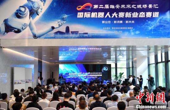4月23日,第二届雄安未来之城场景汇国际机器人大赛新业态赛道预赛在雄安新区举办,赛事吸引海内外70余家科技领军企业及顶尖高校团队同台竞技,多款突破性机器人产品亮相。图为比赛现场参赛机器人进行演示。