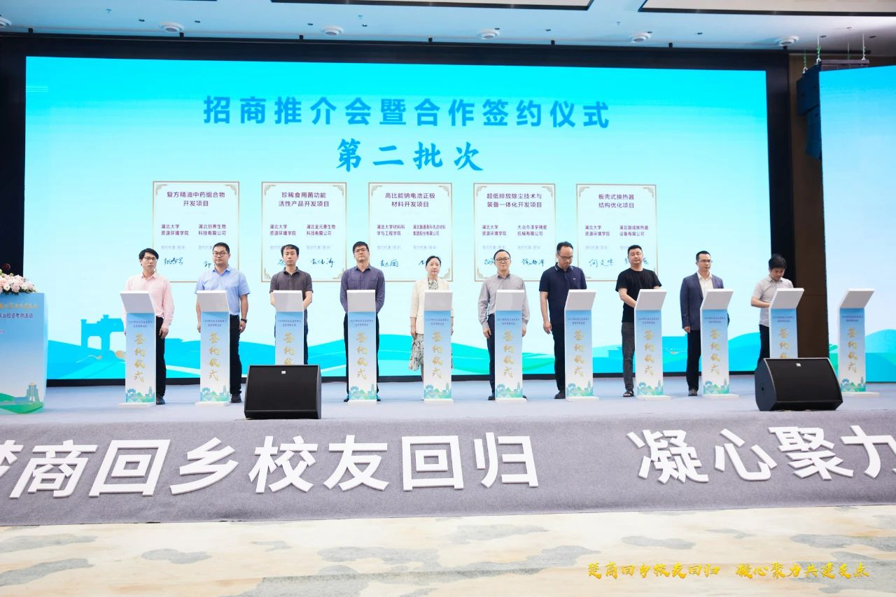 在合作签约仪式现场,分别进行了大冶市产业投资推介和湖北大学科技成果推介。大冶市人民政府与湖北大学正式签署全面深化战略合作协议,四个批次共计21个校地企合作项目集中签约。