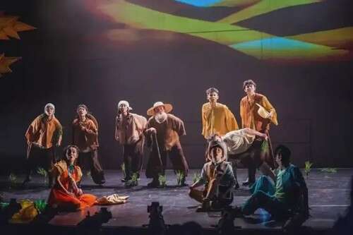 《爷爷的水稻田》以祖孙三代人守护稻田的时空穿越为主线,将袁隆平院士“禾下乘凉梦”化作舞台上的星光,让观众在70分钟里完成了一场关于土地、生命与传承的灵魂叩问。爷爷带着孩子们从陕西出发,穿越秦岭隧道、长江流域,前往杭州参加纪念袁隆平的音乐会。旅途中,他们宿山林、寻野稻,在篝火旁聆听祖辈与水稻的不解之缘:年轻的爷爷曾向往城市繁华,在饥荒年代护送粮车时目睹乡亲们期盼的眼神,幡然醒悟“粮食不仅是老百姓的命,更是一个国家的命脉”,毅然与乡亲们“饿着肚子把种子留给明天”。