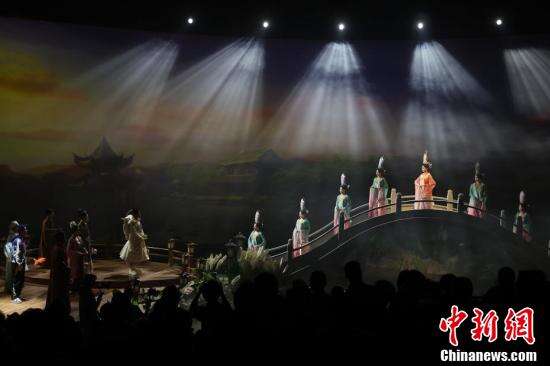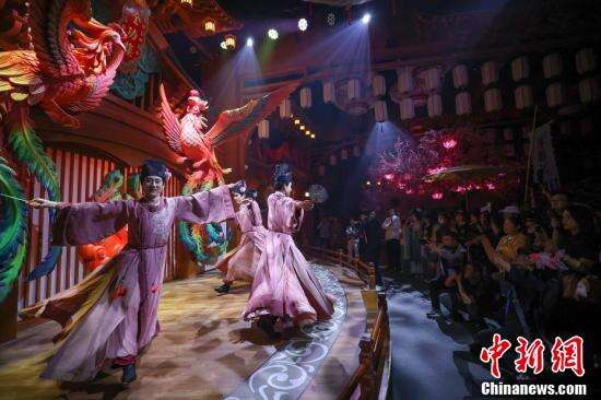 4月25日晚,江苏昆山,周庄古镇《只此周庄》行浸式多维空间剧焕新展演。该剧打破了传统戏剧和舞台表演的模式,通过进一步加强3D视觉效果和人物内心独白,给观众带来独特的文化体验。作为历史悠久的江南古镇,周庄古镇始终致力于探索传统文化的现代表达,扎实做好历史文化资源的系统性保护和挖掘,推动古镇焕新。图为演员们表演节目。
