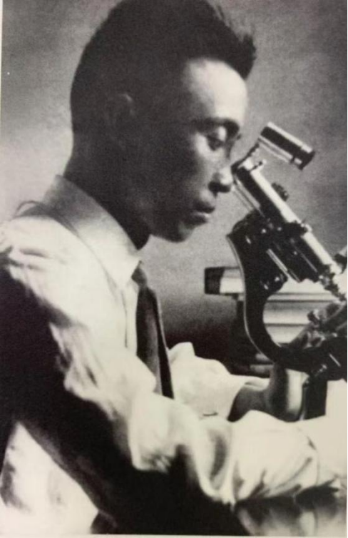 ∆何作霖在显微镜前工作