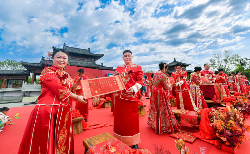 4月27日,一场别开生面的集体婚礼在雄安新区悦容公园成功举办,25对新人身着中式传统礼服,在现场百余人的见证与祝福下,在“未来之城”共许爱的承诺、共倡婚俗文明新风。