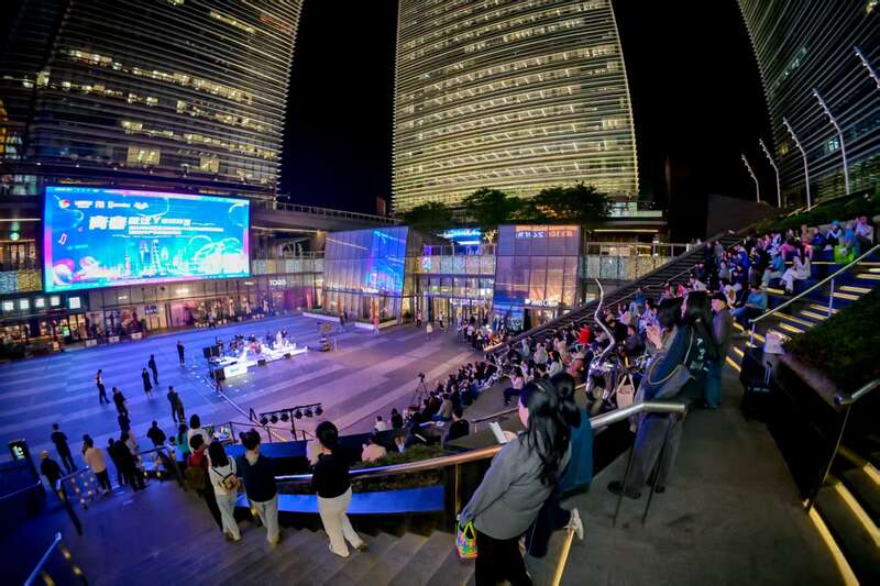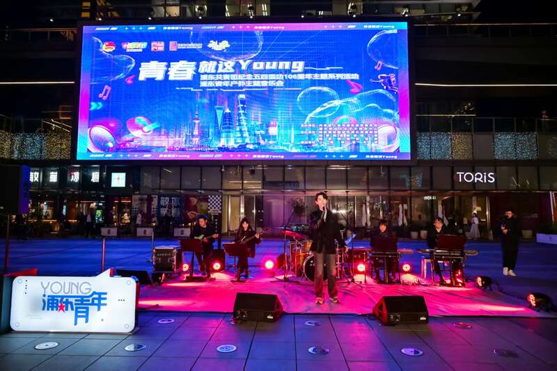 中国青年报客户端讯(中青报·中青网记者王烨捷)4月28日晚,一场“青春歌会”在上海市陆家嘴中心的L+Mall商场内的露天花园银河广场展开。据悉,这场“青春就这Young”歌会由共青团浦东新区委员会和浦东新区文化艺术指导中心联合主办,是浦东共青团纪念五四运动106周年主题系列活动之一。歌会选址于青年潮流地标,融合“青年文化”与“青春经济”元素,吸引众多青年汇聚。